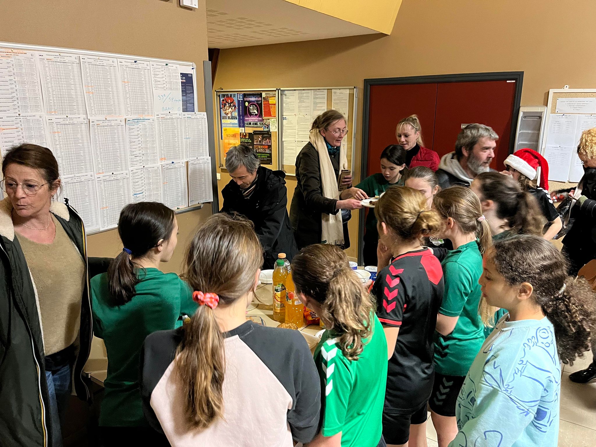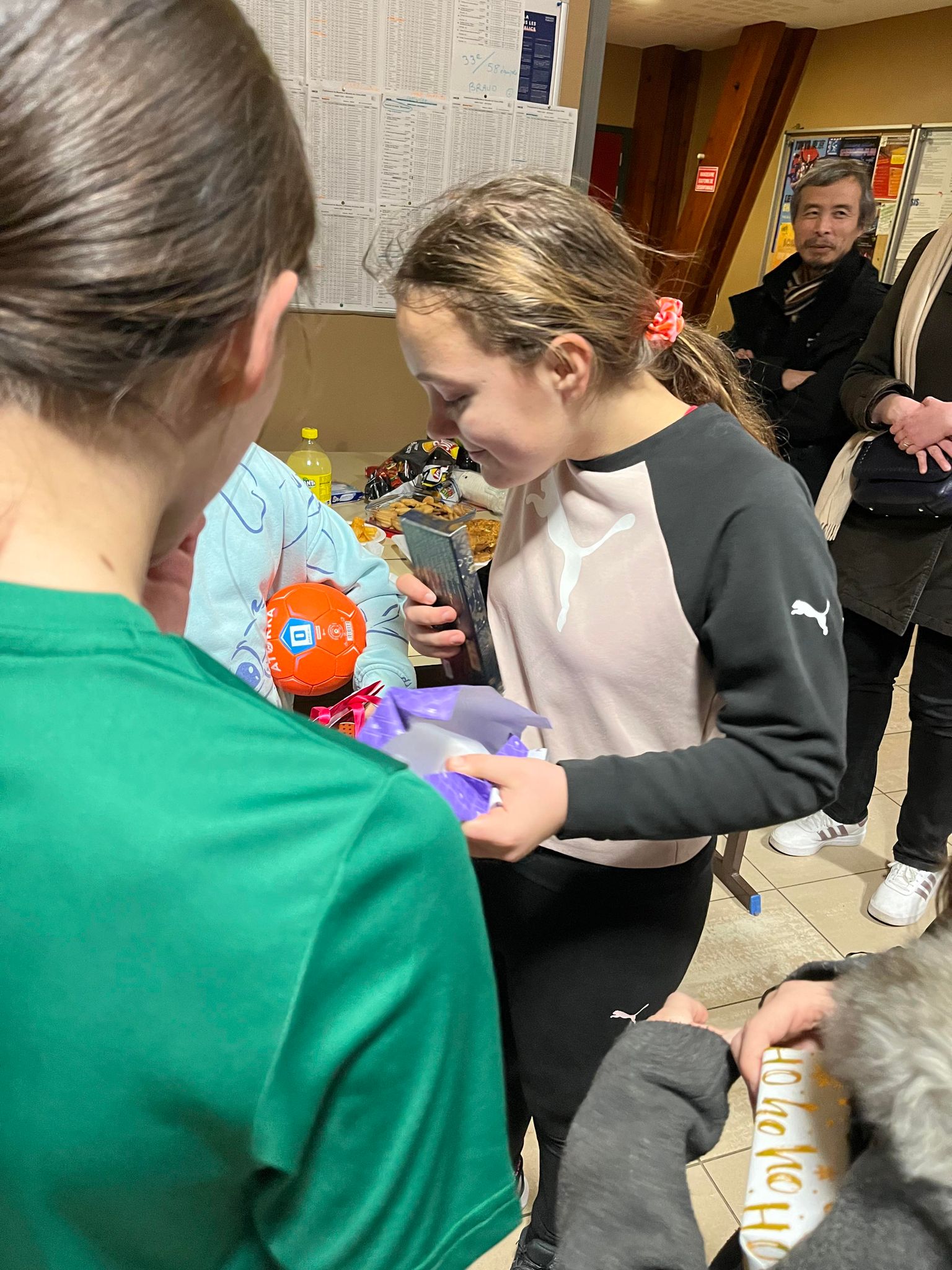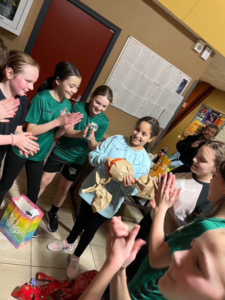 Chez les U13 Filles, une séquence de secret Santa est venue ponctuer la fin d’entraînement, suivie d’un apéritif entre encadrant, parents et joueuses, tout comme chez les U13 Garçons.
