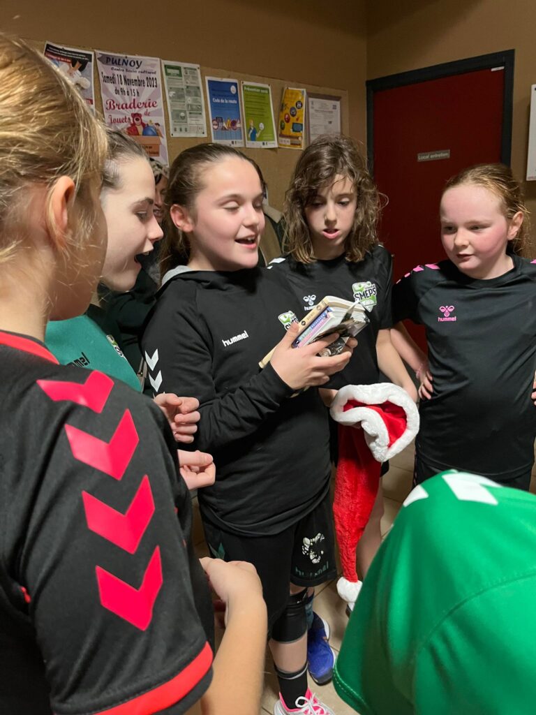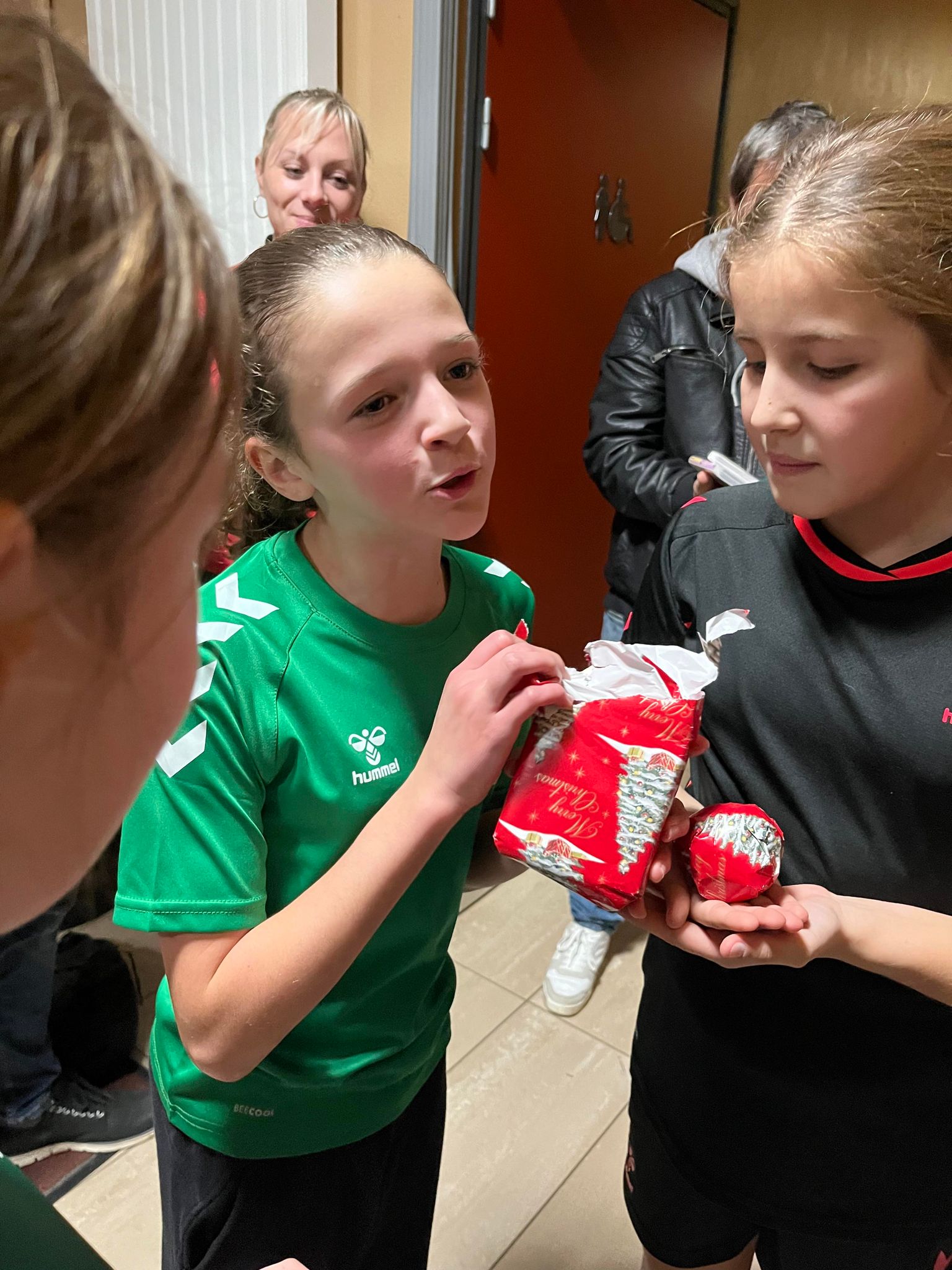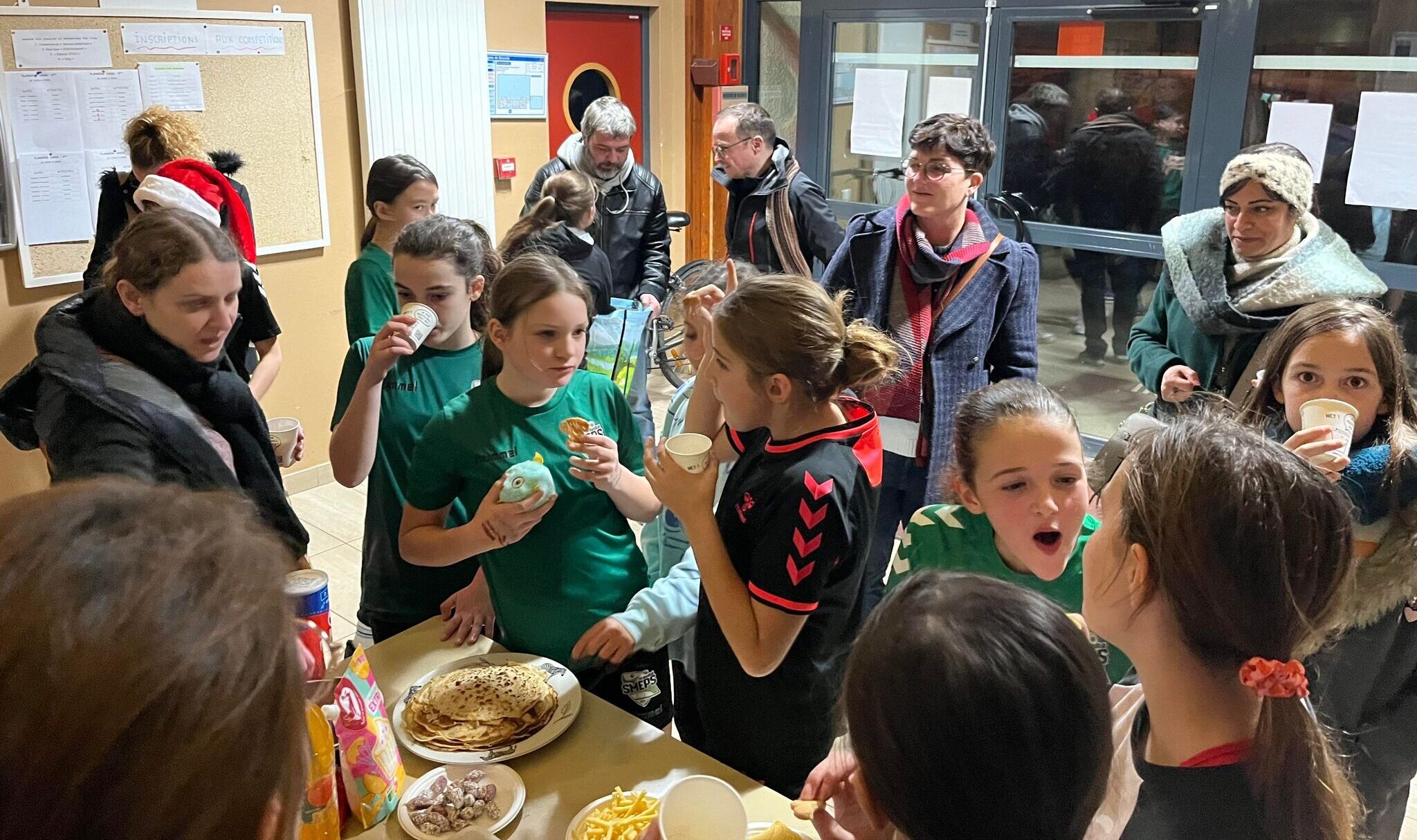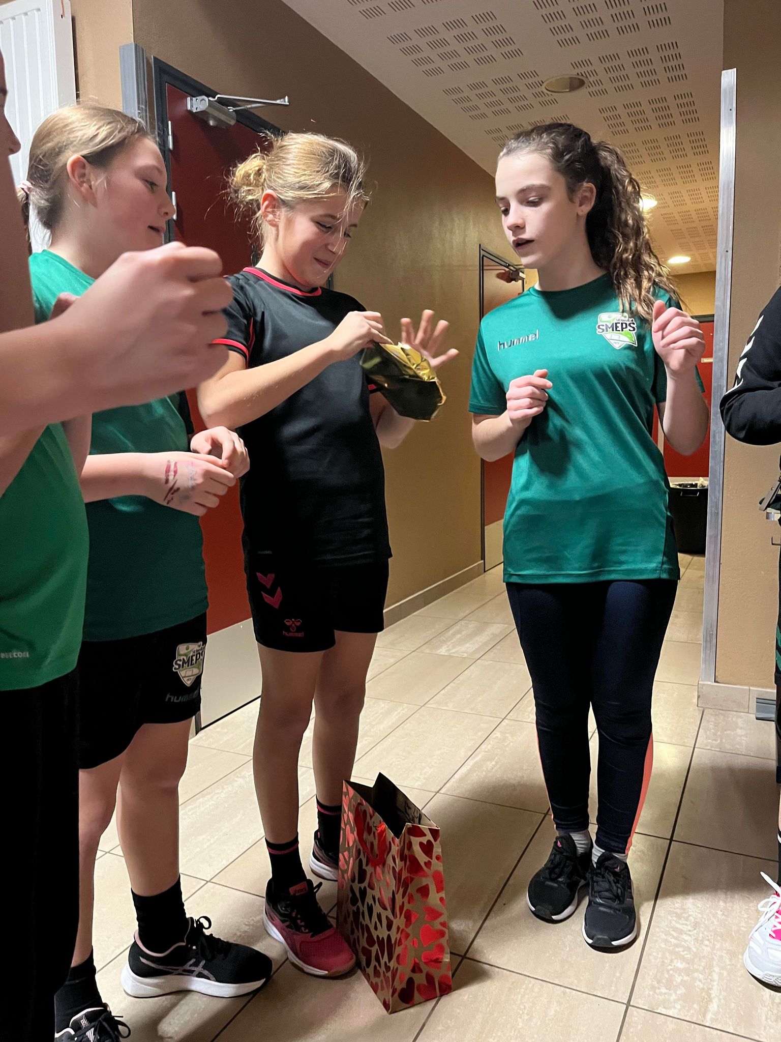 Chez les U13 Filles, une séquence de secret Santa est venue ponctuer la fin d’entraînement, suivie d’un apéritif entre encadrant, parents et joueuses, tout comme chez les U13 Garçons.